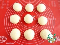 Формирую из кусочков теста шары, накрываю их пленкой, оставляю их в покое на 10-15 минут. |