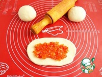 С помощью скалки раскатываю кусочек теста в прямоугольник. |