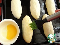 Противень смазываю растительном маслом, выкладываю на него пирожки швом вниз. Пирожки накрываю пленкой, даю им немного увеличиться в размере. |
