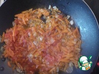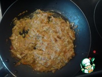 К луку добавляем тертую морковь тушим до изменения цвета моркови (должна стать бледно оранжевая) |