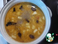 Добавляем зажарку в бульон. Доводим до кипения. Заправляем солью по вкусу. Снимаем с плиты. |