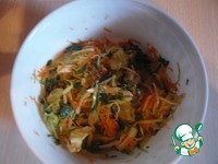 Слегка мнем капусту, морковь и пересыпаем сахаром 0,5 ч. л. |