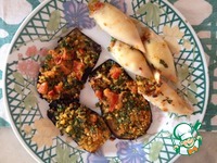 Приятного аппетита! В качестве гарнира я запекла баклажаны, наверх которых выложила оставшуюся массу для фаршировки. |
