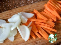 Вторую луковицу почистить, нарезать. Морковь нарезать бруском. ( в супах я люблю среднюю нарезку овощей, если Вы не любите, натрите морковь на крупной терке). Овощи выложить в суп. Варить далее. |