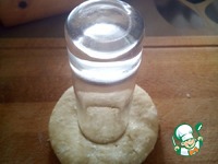 Тесто раскатываем не очень тонко пласт примерно 0,5 см. Большой кружкой вырезаем круг. |