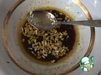 Соедините соевый соус,2 капли соуса табаско, базилик, оливковое масло. |