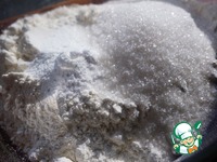 Заливаем жидкую фазу в сухую. Перемешиваем ложкой до момента, пока все мука не увлажнится. |
