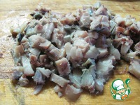 Влить заправку и все хорошо перемешать. Соль я не добавляла совсем. |