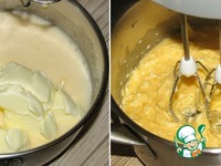 Добавить нарезанное мягкое масло и ещё раз взбить. |