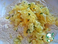 Итак, от предыдущего рецепта у нас осталась серединка и обрезки цукини. Натереть на крупной тёрке. |