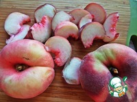 Для украшения и вкуса я решила взять вот такие сплющенные персики-их очень удобно делить на дольки. |