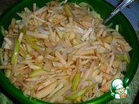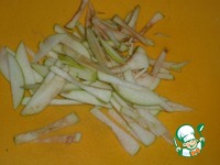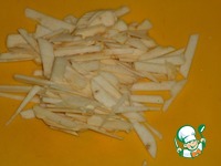 Репу так же очистить и нарезать тонкими пластинами (можно натереть на терке) |