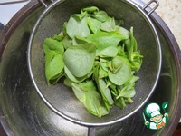 Промыть листья портулака (толстянки) в большой миске с водой, с тем, чтобы песок опустился на дно миски. Потом откинуть на дуршлаг. |