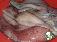 Кальмары промыть от соды и чуть обсушить. |