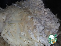 Готовим начинку-крошим фету, натираем сыр. |