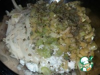 Добавляем нарезанные овощи, соль, перец, орегано, яйцо и муку. |