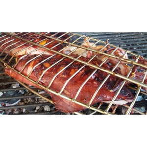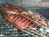 Кальмар не требует длительного приготовления. Наоборот, практически открытый огонь, частые повороты решетки, недлительное пребывание на огне. Вот до такой корочки запекаем. |