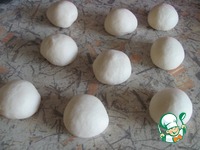 При помощи весов тесто делим на равные части. Я разделила на 9 частей примерно по 50 грамм. Подкатываем каждый кусочек в шар, накрываем и даем постоять 10 минут. |