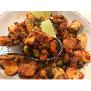 Вот как то так! Можно готовое блюдо слегка присыпать чили хлопьями. Красиво и очень вкусно. |