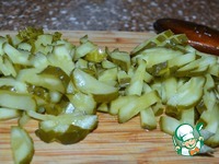 Огурцы нарезать мелким бруском и выложить в казан. Тушить далее. |
