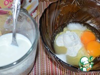Влить молочную смесь к мучной, вымесить до однородности. Добавить растительное масло, перемешать. |
