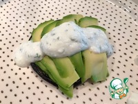 Выложите на тарелки. Нарежьте авокадо тонкими пластиночками и уложите на шампиньон. На каждую шляпку по половине авокадо. |