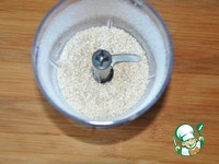 Смешиваем муку, измельчённые хлопья и разрыхлитель. В качестве мерного я использую гранёный стакан на 250 мл. |