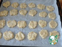 Застилаем противень пекарской бумагой, кладём тесто большой ложкой, слегка приминаем мокрыми пальцами. Ставим в нагретую до 200 градусов духовку на 20 минут, запекаем до подрумянивания. |