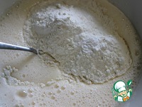 Высыпать в смесь муку, смешанную с содой и хорошо перемешать наше тесто |
