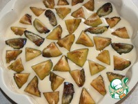 Форму для запекания смазать маслом. Вылить в нее тесто и сверху выложить сливы, разрезанные на четыре части. У меня были большие сливы, поэтому я разрезала на 8 частей |