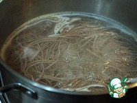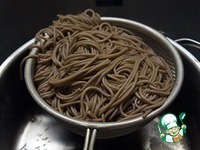 Лапшу отварить в подсоленной воде по инструкции на упаковке. |