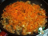 Обжарить лук до мягкости, добавить к нему морковь. |