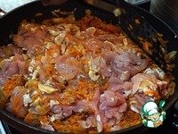 Как только морковь станет мягкой, отправить к овощам куриное филе. |