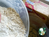 Просеять муку поверх яичной смеси. Добавить овсяные хлопья «Мистраль» и всыпать корицу. |