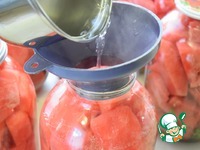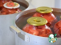 На дно большой кастрюли кладем полотенце, ставим банки и в кастрюлю наливаем воду по плечики банки или чуть выше. Доводим воду до кипения и стерилизуем банки с содержимым 20 минут. |