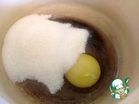 Сначала отдельно кефир смешать с содой. Теперь взбить яйцо с сахаром и щепоткой соли. |