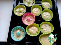 Наполняем формочки тестом, оставляем место в формочках для подъема кексов, так как тесто хорошо поднимается. Выпекать в хорошо разогретой духовке 200* 20мин. |