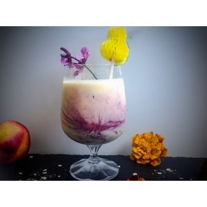 В бокалы на персиковый смузи влить черничную массу, слегка перемешать с помощью деревянной шпажки, чтобы смешать цвета. Украсить смузи по своему вкусу и подать к столу! Приятного аппетита! |