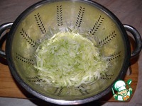 Цуккини ( кабачок) натереть на терке и поместить в дуршлаг на несколько минут. |