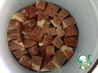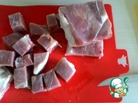 Свинину режем кусками примерно 5х5 см |