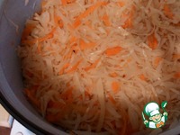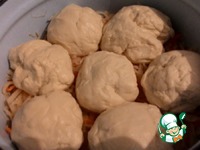 Сверху на картофель укладываем квашенную капусту. Квашенную капусту я очень люблю, квашу сам, поэтому кладу больше, чем указано в рецепте |