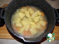 Кабачок очистить, нарезать полукольцами (или чуть меньше, но не мельчить), добавить в суп (по желанию можно еще положить стручковую фасоль). |