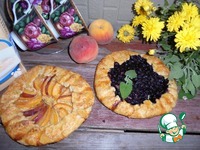 Верху на один пласт выложить чернику, на вторую-персики, аккуратно завернуть края теста на начинку. |