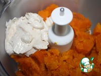 Готовую тыкву очистить от шкурки и сложить в блендер. Туда же добавить йогурт со специями. Все хорошо пробить в однородную массу. |