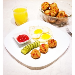 Описание: Многие предпочитают начинать день с сосисок, колбасы, бекона или чего-то подобного, тяжелого и не очень полезного. Почему бы не отдать предпочтение натуральному продукту домашнего приготовления? Мясо индейки дополняем сочными овощами, а вместо яйца и муки используем овсяные хлопья, снижающие калорийность и придающие дополнительную пользу, - и все получается прекрасно! Маленькие яркие фрикадельки очень радуют глаз и так нравятся детям!
