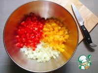 Нарезаем мелко лук и перец. |