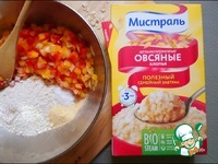 Овсяные хлопья надо помолоть и добавить к овощам вместе с чесноком и солью, затем перемешать. |
