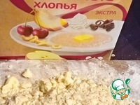 Масло порубить на мелкие кусочки с мукой, овсяными хлопьями мистраль и оставшимся сахаром |