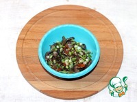 5. Смешиваем начинку с мелко порезанным зеленым луком. |
