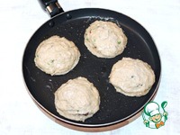 6. На разогретом растительном масле выпекаем блины небольшого размера с одной стороны. Выкладываем начинку. |